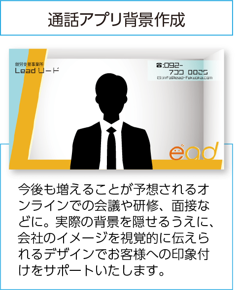 通話アプリの規格に合わせたサイズの背景画像を作成いたします。会社の宣伝としてのご利用や、自分をアピールする背景の作成をお手伝いいたします。個人利用でのご依頼も歓迎です。