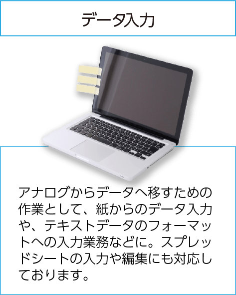 今までアナログで行っていた記録作業をデータ化する場合や、PC上のデータをスプレッドシートなどへの転記・挿入作業など。様々な用途でご利用いただけます。